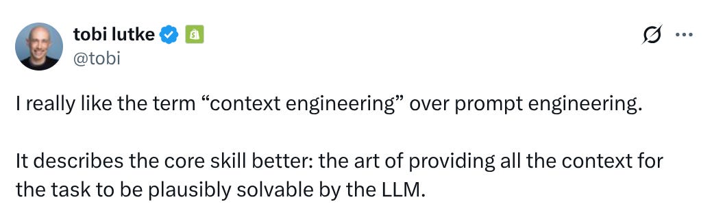 Tobi Lutke, CEO of Shopify, recently captured the importance of context engineering: