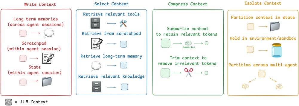 There are many potential ways to group “context” partners, but I like LangChain’s general categories of context engineering.